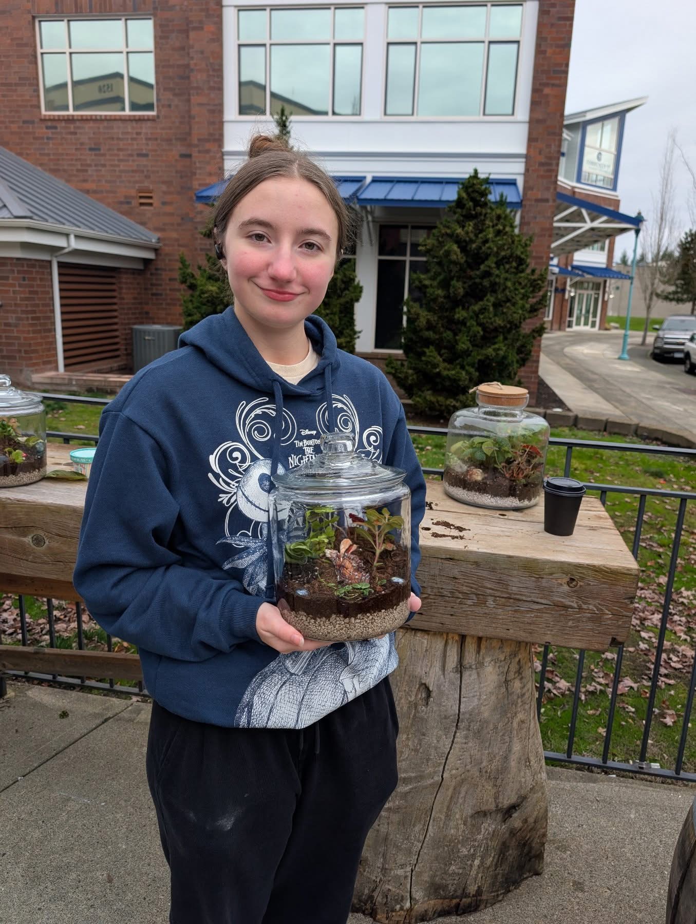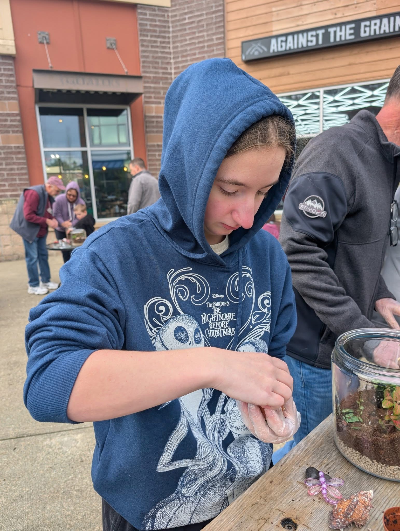 This was a very popular event! We’re continuing our partnership with the Master Gardener Program next year. And, yes, the terrarium workshop will be offered again. Here are some photos from the November 22 workshop led by Master Gardener Guy Bengtson, held outside Bliss Small Batch Creamery and Dark Pour Cafe.